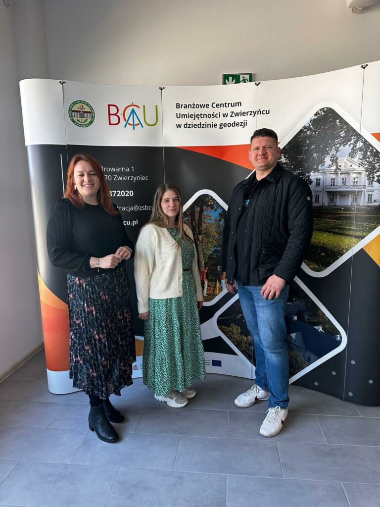 W dniach 14-15 marca 2026r. odbyło się branżowe szkolenie zawodowe w zakresie podstaw skanowania laserowego, w którym uczestniczyli nasi nauczyciele przedmiotów geodezyjnych: Weronika Piankowska, Iwona Skólska, Sebastian Szmidtka. Szkolenie w wymiarze 20 godzin prowadzone było przez Branżowe Centrum Umiejętności w Zwierzyńcu w dziedzinie geodezji objęte wsparciem przez Stowarzyszenie Geodetów Polskich. Nauczyciele uczestniczyli zarówno w wykładach jak i szkoleniu praktycznym. Część praktyczna polegała na zebraniu danych, czyli zeskanowaniu wybranego obiektu i utworzenia chmury punktów. W tym celu uczestnicy wraz z organizatorami udali się do Zamościa.