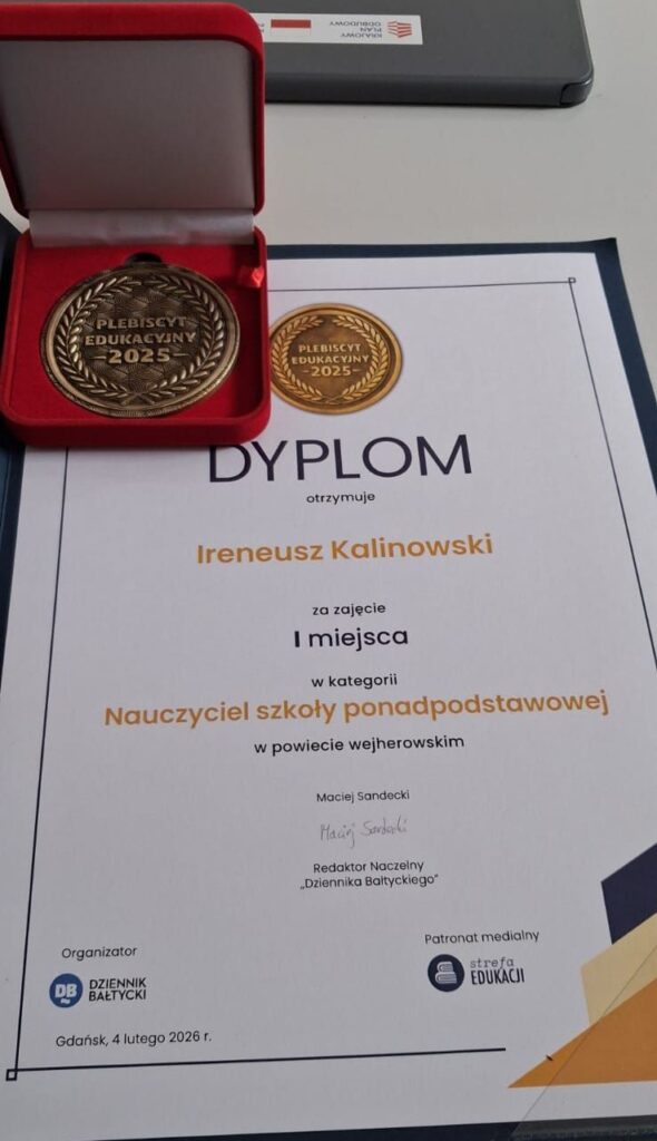Z wielką radością składamy serdeczne gratulacje panu Ireneuszowi Kalinowskiemu – Nauczycielowi PZS Reda, który zdobył I miejsce w plebiscycie Dziennik Bałtycki w kategorii nauczyciel szkoły ponadpodstawowej w powiecie wejherowskim.