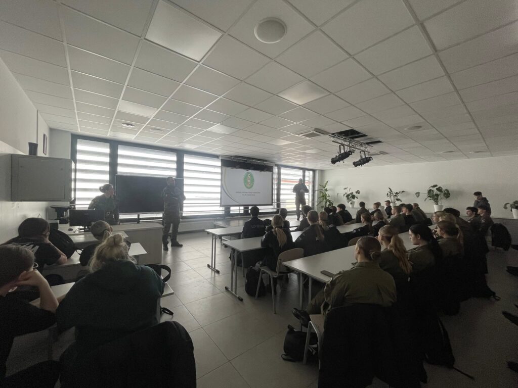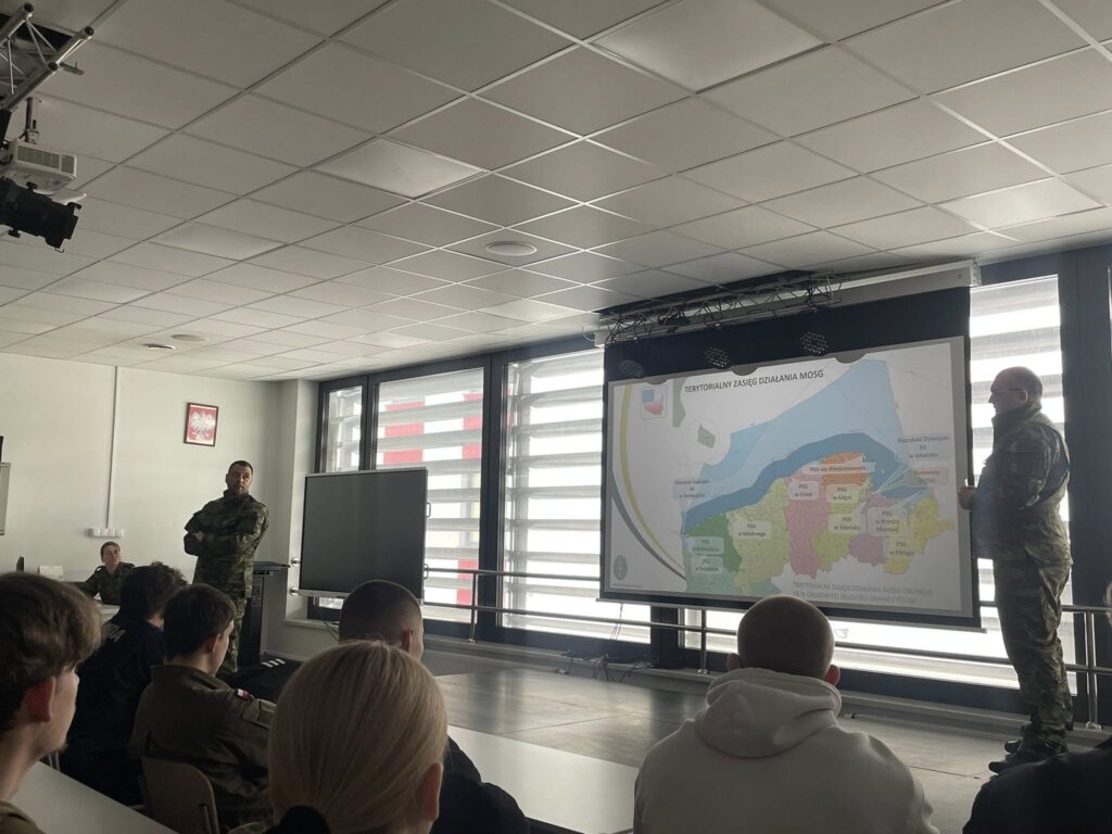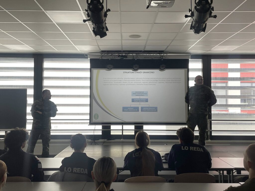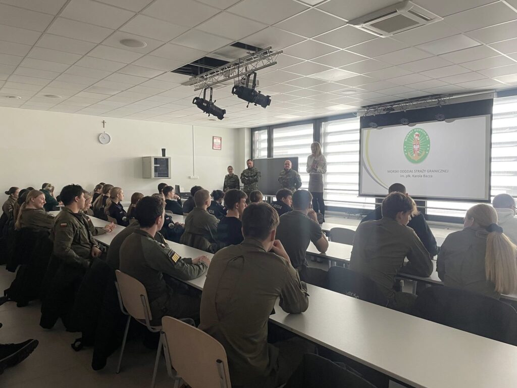 25.02.2026r. klasy 4aLO, 4bLO i 5bT miały okazję uczestniczyć dzisiaj w spotkaniu z przedstawicielami Straży Granicznej. Kadeci klas maturalnych dowiedzieli się m. in. czym zajmuje się służba graniczna i jak wygląda jej struktura organizacyjna w Polsce. Ponadto, dowiedzieli się o misjach poza granicami RP, o pojazdach i wyposażeniu specjalistycznym i wreszcie o procedurze kwalifikacyjnej kandydata do służby w Straży Granicznej.