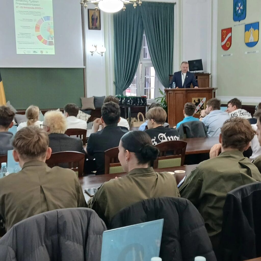W ramach Światowego Tygodnia Przedsiębiorczości uczniowie klasy 3bT: Zuzanna Zieman, Marcel Brzoskowski, Igor Wielgus oraz Patryk Hinc wzięli udział w Powiatowym Turnieju „Lider Przedsiębiorczości”, w którym zdobyli II miejsce.