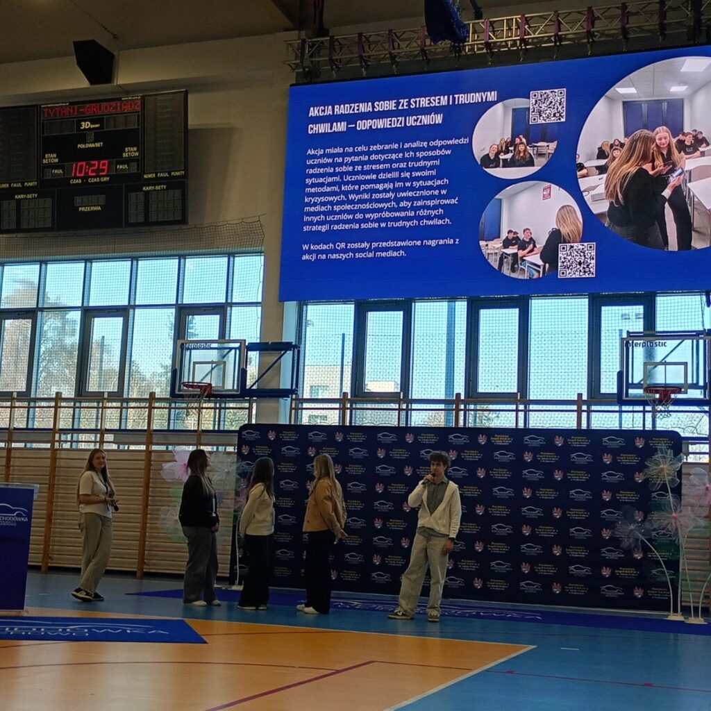Następnie drużyny z różnych szkół zaprezentowały relacje z realizowanych kampanii społecznych, dzieląc się doświadczeniami i pomysłami na wspieranie zdrowia psychicznego młodzieży. Kolejnym punktem programu była prelekcja psycholożki o faktach i mitach dotyczących zaburzeń psychicznych, po której odbyła się druga część prezentacji zespołów.