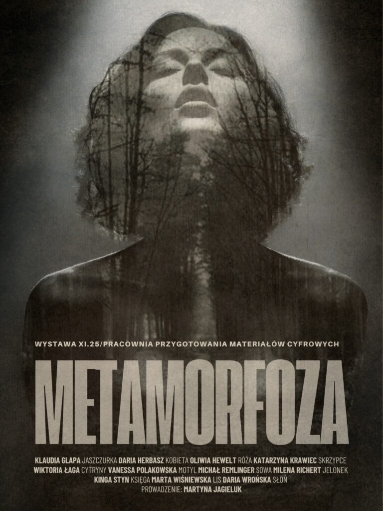 W budynku B, na II piętrze, dostępna jest wystawa prac uczniów klasy 3dT FOTO pt. „Metamorfoza, przenikanie, przejście”. Prezentowane fotografie zostały wykonane w Pracowni Przygotowania Materiałów Cyfrowych i stanowią efekt pracy twórczej uczniów, łączącej umiejętności techniczne z indywidualną wrażliwością artystyczną.