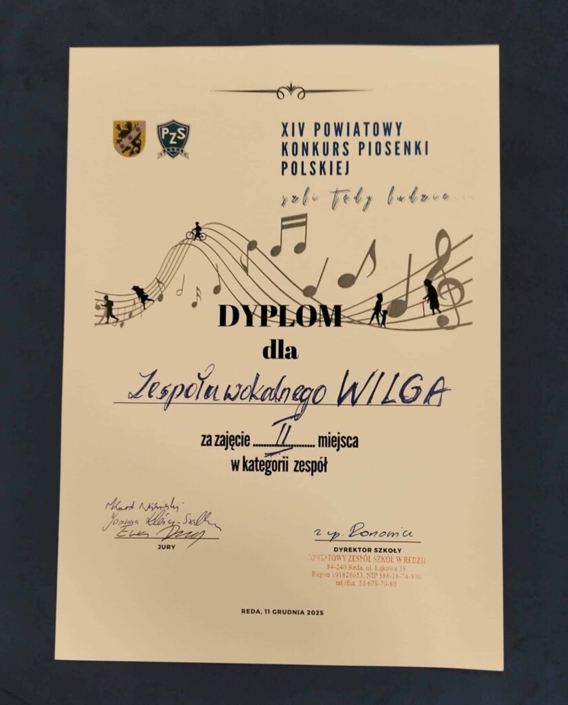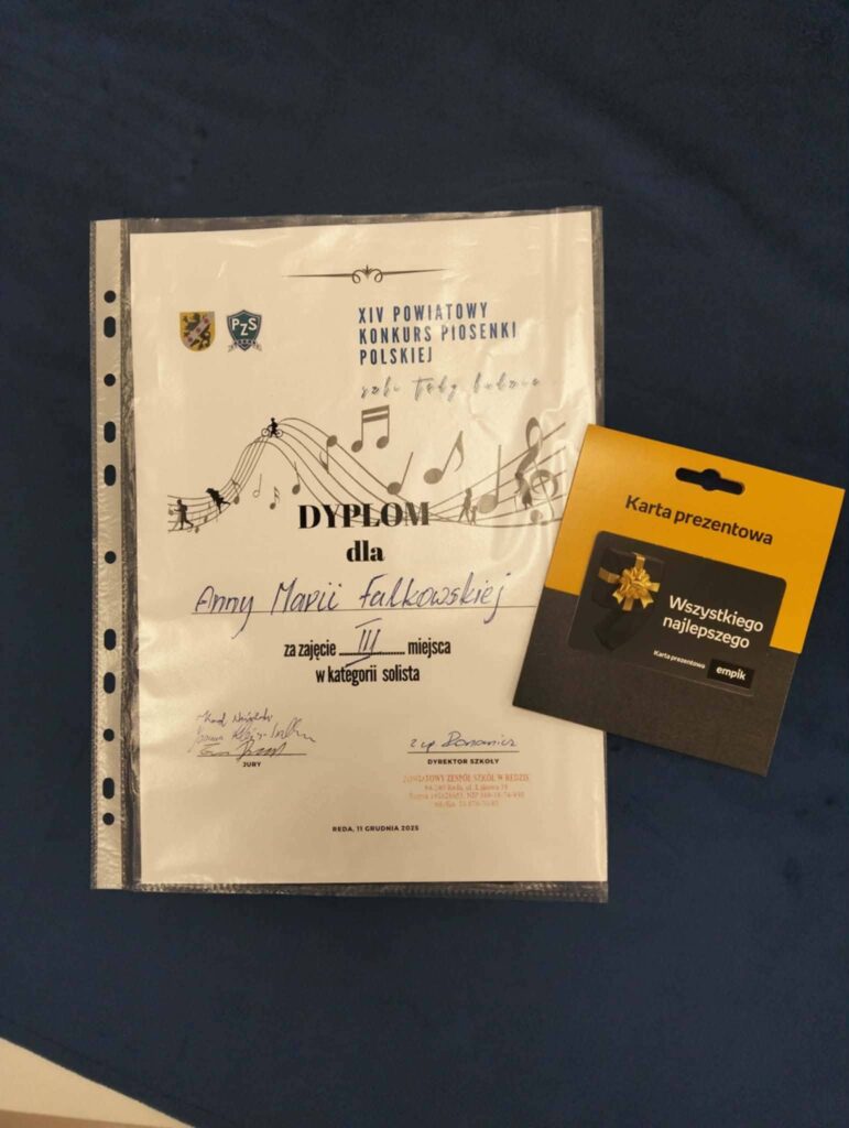 Dnia 11 grudnia 2025r. odbył się w naszej szkole XIV Powiatowy Konkurs Piosenki Polskiej. Komisja w składzie: